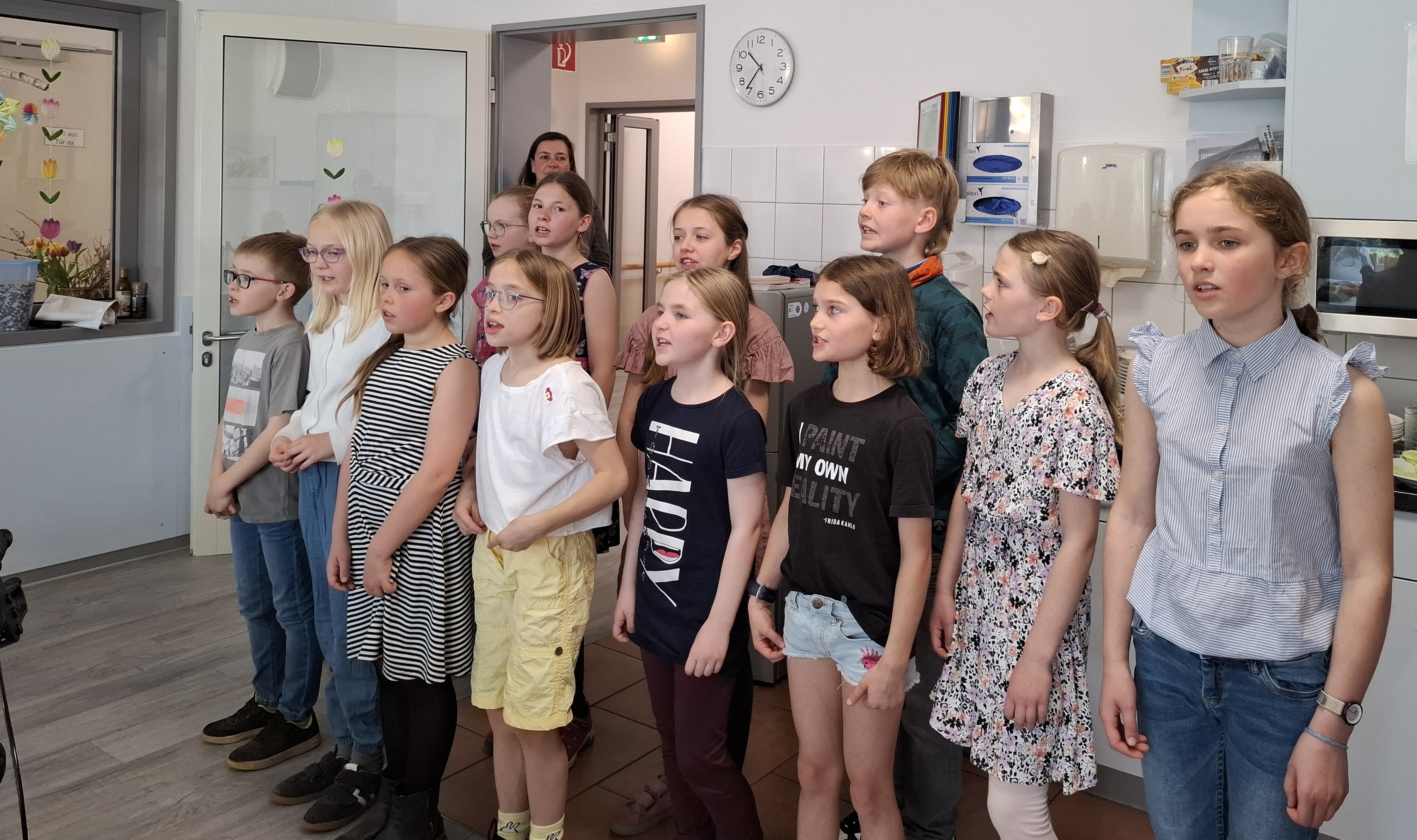Unser Schulchor hatte am 16. April die schöne Gelegenheit, im Seniorenwohnheim „Rosengarten“ aufzutreten. Der am Anfang des Schuljahres gegründete Chor unter der Leitung von Frau Deke und Frau Löwa trifft sich jeden Dienstag mit musikbegeisterten Kindern der Klassenstufe 3 und 4. In den letzten Wochen haben wir uns fleißig auf diesen besonderen Tag vorbereitet und zusammen mit den Kindern traditionelle als auch moderne Kinderlieder einstudiert.