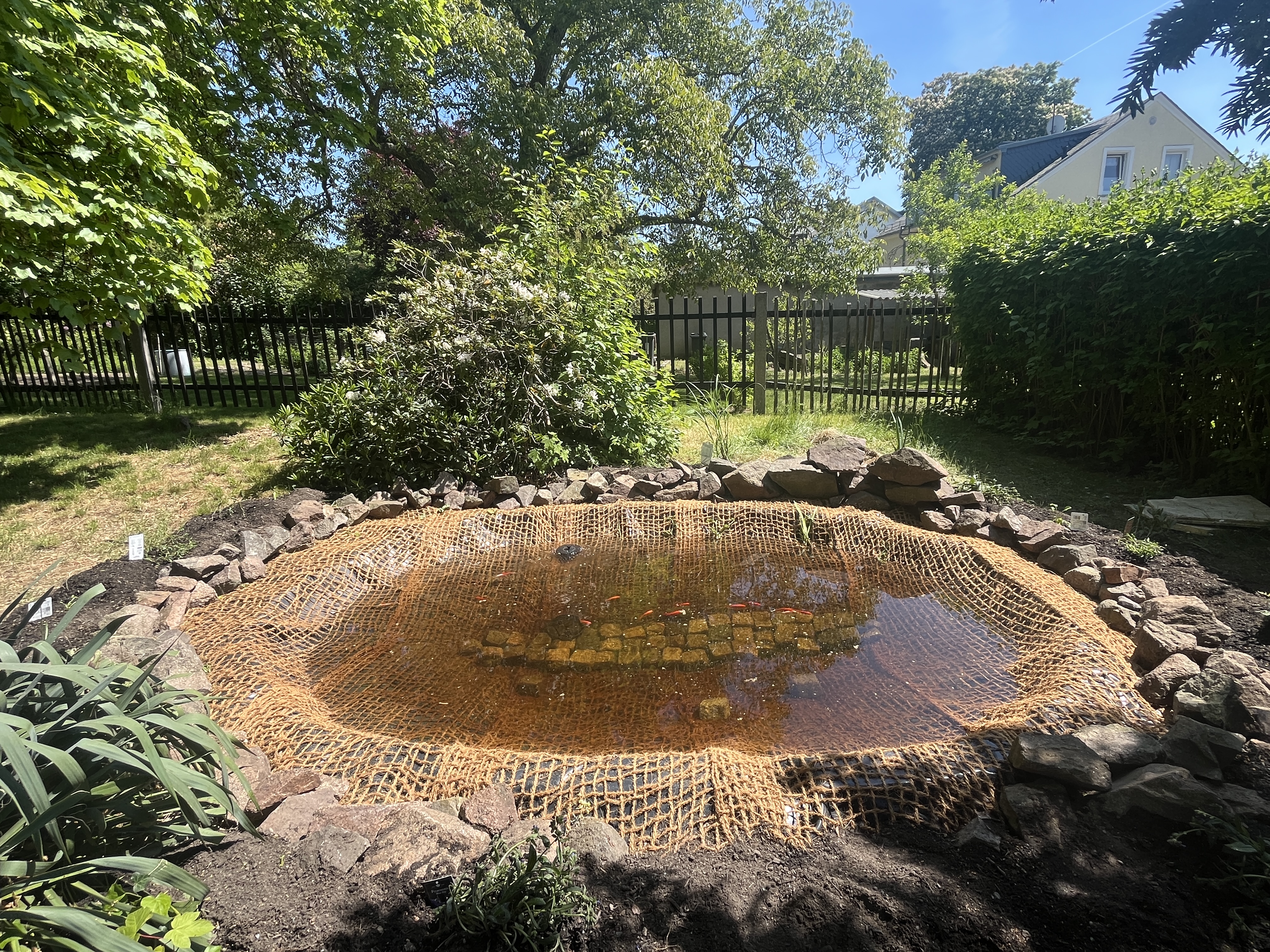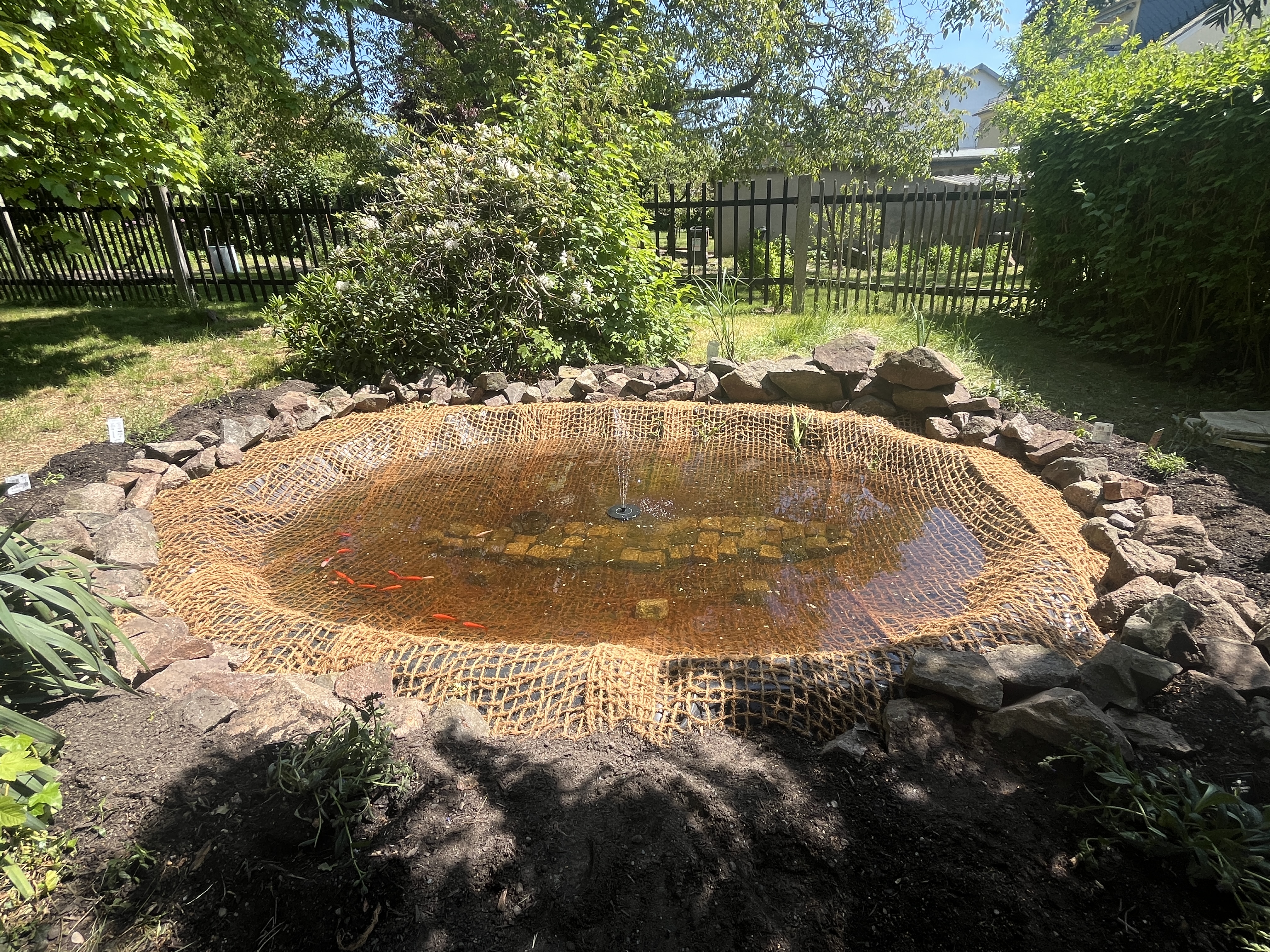 Nun erfreuen sich alle an unserem neuen Goldfischteich.