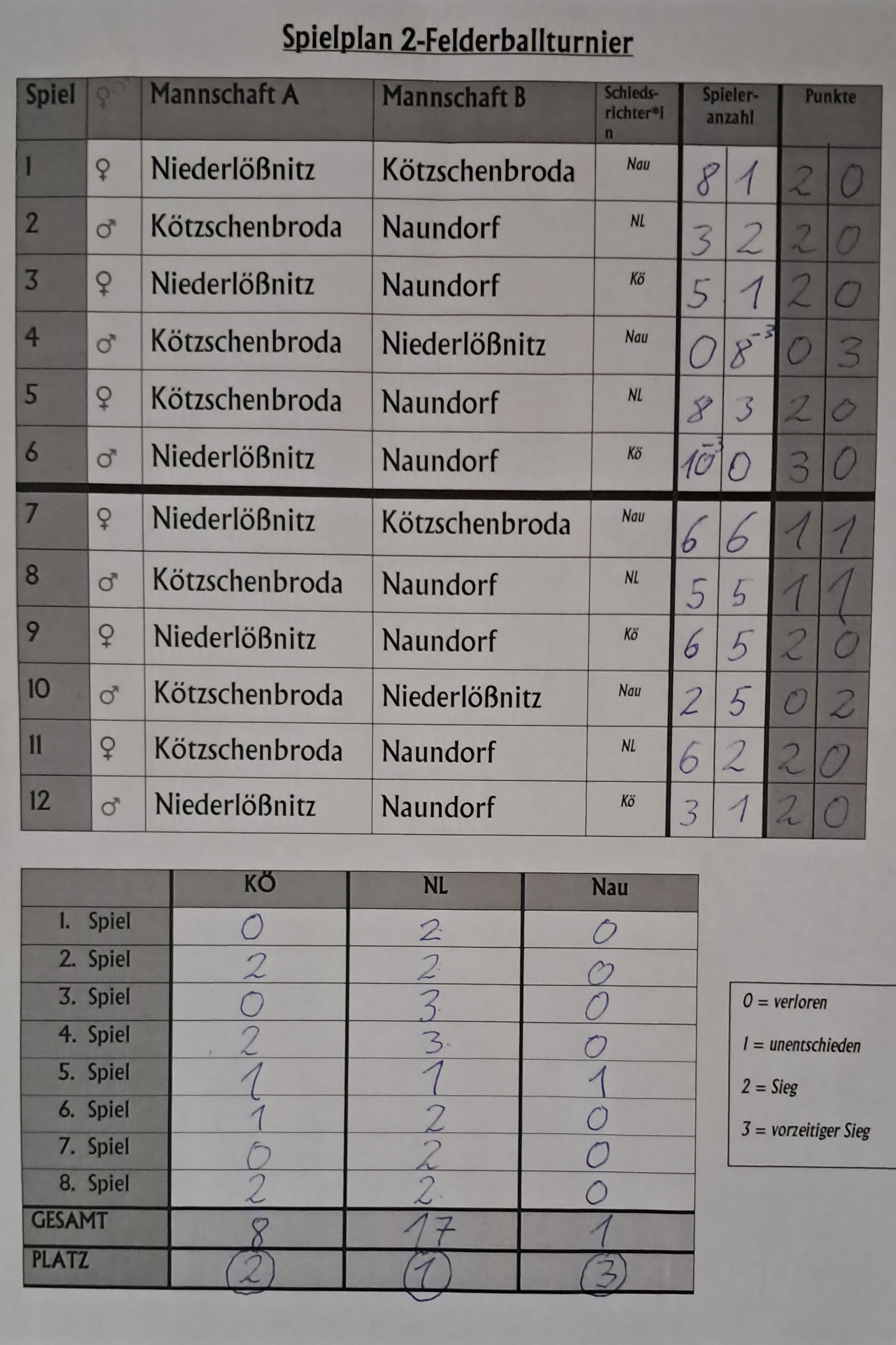 Am 5.Juni 2025 war es wieder Zeit für das „Traditionelle 2-Felderballturnier der 4.Klassen“. Mit dabei waren, die Grundschulen Kötzschenbroda, Niederlößnitz und Gastgeber Naundorf mit jeweils einer Mädchen und einer Jungen Mannschaft. Da in diesem Jahr leider nur drei Schulen am Wettkampf teilnahmen, wurde eine Doppelrunde gespielt.